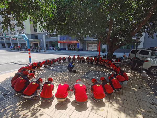 這個(gè)活動(dòng)分三個(gè)小項(xiàng)目:拋瓶子、報(bào)數(shù)、喊口號,非??简?yàn)團(tuán)隊(duì)的團(tuán)結(jié)合作能力。