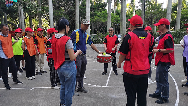 擊鼓顛球又叫動(dòng)感顛球、鼓動(dòng)心聲、鼓動(dòng)人心。這是一個(gè)要求團(tuán)隊(duì)高度協(xié)作的項(xiàng)目,需要大家在短時(shí)間內(nèi)不斷練習(xí),使每個(gè)人在過程中協(xié)調(diào)一致。