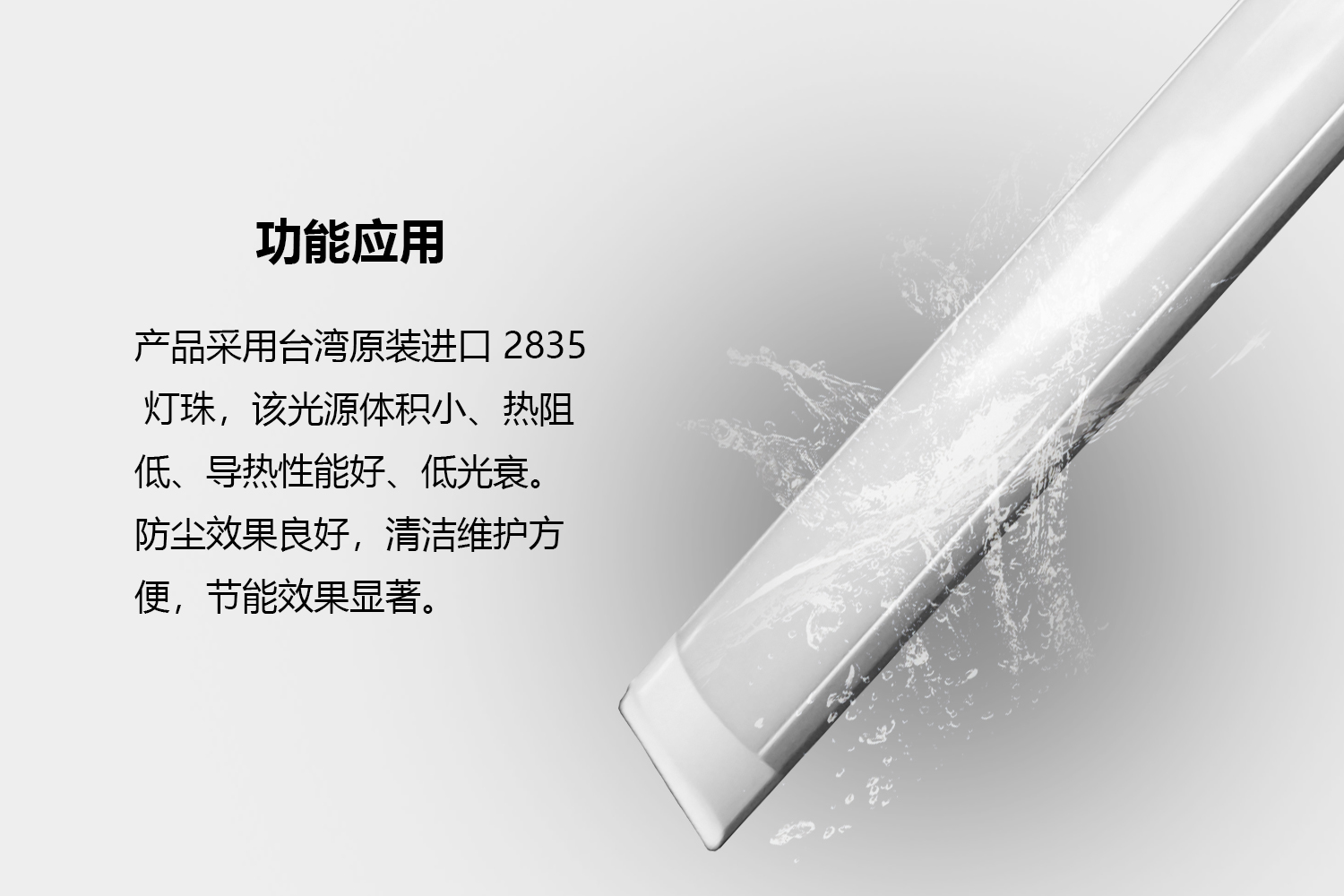 半圓弧設(shè)計(jì),完美解決LED直線出光問題,采用2835光源,壽命長(zhǎng)達(dá)50000小時(shí);