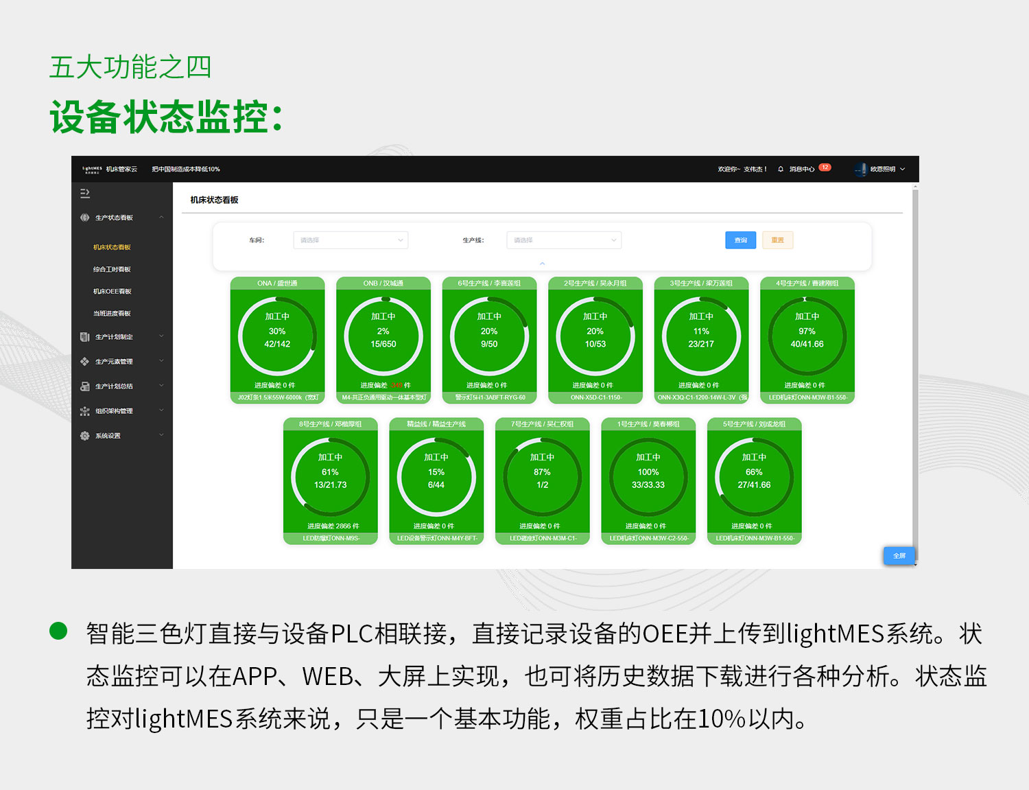機(jī)床管家云MES管理系統(tǒng),適用所有機(jī)床,裝上智能三色燈即可實(shí)現(xiàn)機(jī)聯(lián)網(wǎng)