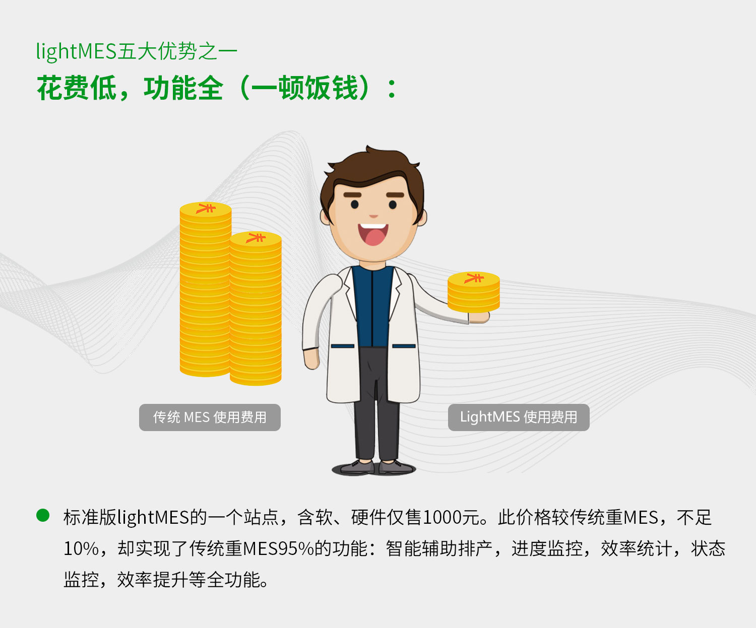 機(jī)床管家云MES管理系統(tǒng),用傳統(tǒng)MES不到10%的花費(fèi),實(shí)現(xiàn)95%的功能。