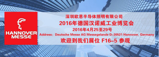 深圳市歐恩半導(dǎo)體照明有限公司亮相“4月25-29日在德國漢諾威工業(yè)博覽會”。此次展會深圳市歐恩半導(dǎo)體照明有限公司全面展出公司的各項產(chǎn)品”LED機床工作燈“、“LED高端三色燈”、等等,歡迎有興趣的朋友到現(xiàn)場溝通交流!