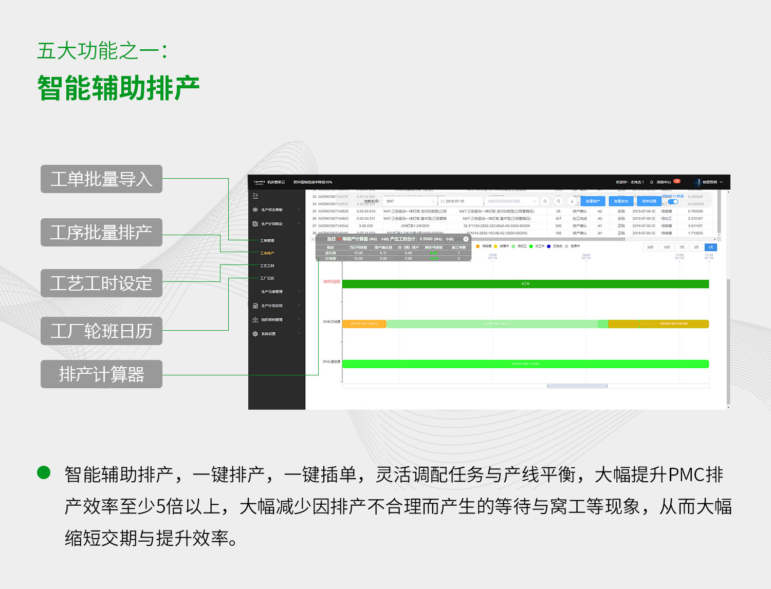 mes管理系統(tǒng)功能之一智能輔助排產(chǎn)。